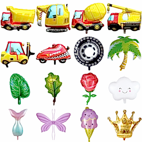 Figürlü folyo balonlarımız ise genellikle cansız varlıkların resimlerini taşır. Bulut, inşaat makineleri, gökkuşağı, ağaç, roket, deniz kızı kuyruğu… Aklınızdaki konsept ne olursa olsun, figürlü folyo balonlarımızla parti alanınızı bir masala dönüştürebilirsiniz. İsterseniz setlerimizle veya tekli olarak da satın alarak istediğiniz tasarımları gerçek kılabilirsiniz.