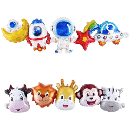 Karakterli folyo balonlarımız genellikle canlı varlıkların resimlerini içerir. Bebek, aslan, kaplan, dinozor… Kısacası partinize özellikle enerji ve neşe katan karakterler! Özellikle safari, uzay ya da yenidoğan konseptli organizasyonlarda oldukça uyumlu bir atmosfer yaratır. İsterseniz setler halinde, isterseniz tek tek satın alarak kendi tasarımlarınızı oluşturabilirsiniz.
